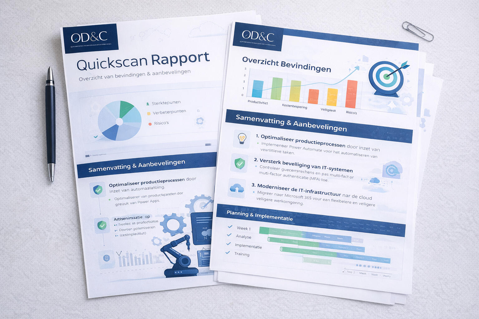 Nog niet zeker waar u moet beginnen? De Quickscan brengt in één dag de belangrijkste knelpunten en kansen in kaart. U ontvangt een helder rapport met concrete aanbevelingen. Vaste prijs, geen verrassingen.